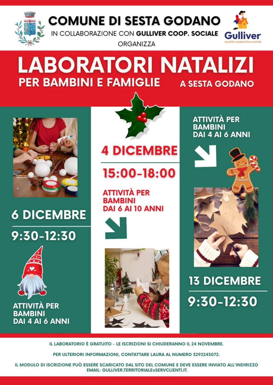 Il Comune di Sesta Godano in collaborazione con Gulliver Coop. Sociale organizza dei laboratori natalizi per bambini e famiglie a Sesta Godano.